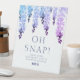 Oh Snap Lila Wisteria Blumenschrift Wedding Event Tabletop Pedestal Sign bietet Ihr Lieblings-Foto mit dem Text "Oh Snap! Bitte teilen Sie uns Ihre Fotos" in der modernen lila Schriftzeichen-Typografie mit Aquarellblau, lila und Lavendel-Wisteria-Blume. Teil einer Sammlung von Evco Studio www.zazzle.com/store/evcostudio