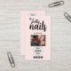 Oh So Pretty Nails Logo QR Code Social Media Icons Blush Pink Business Card for a fun, chic and classy business card. Upload your logo. Put your website URL in the QR Code text box. Customize with all your details. Your customers will love to see your favorite nail art uploaded in the photo template. Background color can be changed with design edit tool. Ungroup the social icons to change/remove, in the design edit tool. Contact designer for any customization questions.