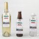 "OH WHAT FUN" Farbblöcke und spielerisches Schneeflockenmuster, Weihnachtsflaschenhalterungen mit Foto vorne und hinten.
