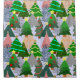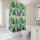 Dieser Duschvorhang hat ein Design von Weihnachtsbäumen in verschiedenen Tönen von grün, rosa, silber und gold mit verschiedenen Dekorationen.