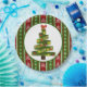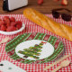 Feierliche Weihnachten rot und grün gestreift mit Papiertüten aus Baumzentrum für Abendessen oder Mittagessen