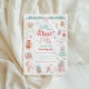 Oh What Fun First Birthday Party Invitations featuring cute pink, red, and green Christmas elements.