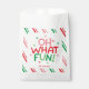 Add a cheerful touch to your next holiday gathering with the Oh What Fun Christmas Favor Bag. Featuring bold holiday typography set on a white square with coordinating diagonal stripes in the background, this design brings a bright twist to your Christmas celebrations. There is a spot to personalize with the host's, family or event name, making it perfect for Christmas parties, cookie exchanges, classroom gifts and more.