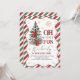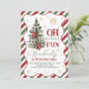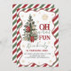 A festive holiday-themed first birthday invitation featuring a Christmas greenery arrangement with red bows, gold snowflakes, and a bold striped red, green, and white border. The playful “Oh What Fun” headline adds a cheerful seasonal touch, making this design perfect for winter or Christmas birthday celebrations. Customizable with party details and ideal for girls’ first birthdays and holiday-themed events.