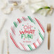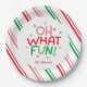 Serve up the fun with the Oh What Fun Red Green Pink Christmas Paper Plates at your next holiday gathering. Featuring bold holiday typography set on a white circle with coordinating diagonal stripes in the background, this design brings a bright twist to your Christmas gatherings. There is a spot to personalize with the host's, family or event name, making it perfect for Christmas and holiday parties. This plate brings a vibrant and joyful touch to your celebrations.
