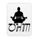 Eine Silhouette eines Mannes in der Lotusposition, der Drahtschleifen macht, wie sie in reparierbaren Zerstäubern verwendet werden. Unter ihm ist das Wort Ohm, erinnert an die Einheiten des elektrischen Widerstands (immer wichtig für Dämpfer) und an die heilige Silbe des Hinduismus und des Buddhismus.