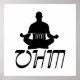 Eine Silhouette eines Mannes in der Lotusposition, der Drahtschleifen macht, wie sie in reparierbaren Zerstäubern verwendet werden. Unter ihm ist das Wort Ohm, erinnert an die Einheiten des elektrischen Widerstands (immer wichtig für Dämpfer) und an die heilige Silbe des Hinduismus und des Buddhismus.