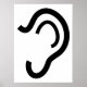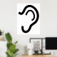 Einfache schwarze Grafik eines menschlichen Ohrs. Passen Sie Ihre eigene Hintergrundfarbe an und wählen Sie sie aus. Bilder auf verschiedenen Geschenken und Produkten erhältlich.