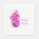 Schöne orchid Art Aquarell Hochzeitsserviette. Eine großartige persönliche Ergänzung zu Ihren Hochzeitstischen. Personalisieren Sie Ihre Brautnamen und Vornamen. Ideal für Orchideen- oder Gartenhochzeiten oder Liebhaber von rosa lila Orchideen. Einzigartig bemalt und entworfen von Sarah Trett.