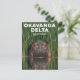 Capture the wild spirit of Botswana with this dramatic, stylized travel postcard for the Okavanga Delta. The illustration features a massive hippo submerged in the water, peering out through tall, lush marsh grass. This powerful image highlights the incredible wildlife and natural beauty of this famous African safari destination. This card is perfect for wildlife enthusiasts, safari travelers, or anyone collecting unique, graphic-style travel art of the African continent.