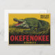 Entdecken Sie die wilde Schönheit Georgiens mit dieser Vintagen Postkarte des Okefenokee Sumpfes. Mit fett gedruckten Retrografien eines Alligators und den Worten "Wildlife Refuge", erfasst diese Postkarte den Geist eines der einzigartigsten natürlichen Lebensräume Amerikas. Perfekt als Souvenir, Reisesammler oder Geschenk für Natur- und Wildtierliebhaber.