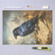Ein auffälliger Rabe sitzt auf einem alten Pergament, das mit mystischen Symbolen versehen ist und von einem warmen Laternenlicht beleuchtet wird. Die Komposition verbindet gotische und okkulte Ästhetik mit tiefen, irisierenden Federn und subtilen magischen Details. Ideal für Dekoupage-Kreationen mit mystischen, esoterischen oder dunklen Fantasy-Themen.