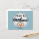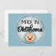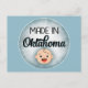 Diese lustige Postkarte zeigt ein niedliches, weißes Babygesicht, das auf blauem Hintergrund "Made in Oklahoma" steht. Ideal für neue Babyankündigungen oder einfach nur zum Spaß.