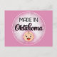 Diese lustige Postkarte zeigt ein niedliches, weißes Babygesicht, das auf rosa Untergrund "Made in Oklahoma" steht. Ideal für neue Babyankündigungen oder einfach nur zum Spaß.