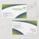 Eine Reinigungsgeschäftskarte passend für eine umweltfreundliche Reinigungsfirma, die ein grünes Blatt- und Handlogo kennzeichnet.