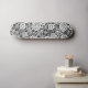 Ein Skateboard mit interessantem und abstraktem Design, bestehend aus verschiedenen runden Formen in verschiedenen Stilen verbunden durch dünne Linien wie ein Netzwerk oder ein Ökosystem.