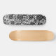 Ein Skateboard mit interessantem und abstraktem Design, bestehend aus verschiedenen runden Formen in verschiedenen Stilen verbunden durch dünne Linien wie ein Netzwerk oder ein Ökosystem.