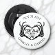 Mit diesem unvergesslichen Flaschenöffner "Bis zum Tod machen wir Teil" einen Toast für immer anheben. Mit zwei Skeletthänden, die ein Herz um die elegante gotische Schrift bilden, ist dieses kühn schwarzweiße Design personalisiert mit Ihren Namen und Ihrem Hochzeitstag. Ein perfekter Sake für Halloween-Hochzeiten, gotische Romantik-Feiern oder Paare, die ihre Liebe mit einem kleinen Vorsprung mögen. Es ist nicht nur auffällig, es ist ein praktischer Vorteil, den Ihre Gäste tatsächlich nutzen werden - lange nachdem die letzte Flasche eingequetscht wurde. Dieser Flaschenöffner ist ein stilvoller Weg, um sich bei Ihren Gästen zu bedanken (er wird nicht links) und Ihnen eine einzigartige Touch zu verleihen.