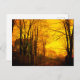 Postkarte mit John Atkinson Grimshaw's Gemälde Oktober Afterglow (1836-1893). Im Herbst schlängelt sich eine englische Straße mit gefallenen Blätter und Skelettbäumen im düsteren Licht des Oktoberhimmels. Eine Viktorianische Frau steht außerhalb eines Herrenhauses. Ein wunderbares Geschenk für die Liebhaber der Romantik und des Viktorianischen Englands und für die mit dunkel geneigten Empfindlichkeiten.