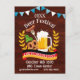 Einladung zum Oktoberfest Bierfestival mit Bierbrauerei, Brezel, Wurst, Bändchen mit deutscher Fahne, bayerische Fahnen auf der Spitze zum Oktoberfest im Herbst.