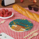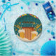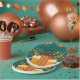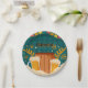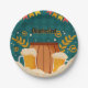 Oktoberfest Papier Teller - die Farben sind aquamarin, Gold, braun, braun und rot.
