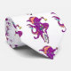 Eine lustige Cartoon-Illustration eines lila Oktopus, der mit dem Fahrrad fährt. Der Vektorktopus ist auf einem Einrad. Der Oktopus trägt einen Fahrradhelm und benutzt seine Tentakel, um das Fahrrad auszubalancieren.