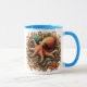 Ein Oktopus mit acht Tentakeln spielt geschickt die Trommeln im tiefen blauen Ozean und erzeugt rhythmische Musik, die unter Wasser hallt.