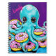 Farbiges und skurriles Notizbuch mit einem Oktopus und Donuts. Personalisieren Sie es mit Ihrem Namen!