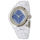 Sie schauen bestimmt in dieser Uhr stilvoll. Eine all-weiße Band kennzeichnend, hat diese Uhr ein Königsblaugesicht mit Weiß- und Marinezutat und weißen Zahlen.