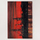 In dieser industriellen Wasserfarbenwelt strahlt der Himmel nach einem genialen Sonnenuntergang in Portland, Maine, in Rot aus. Ölstürme im Bau schaffen krasse Silhouetten gegen die brillanten Rot- und Orangen. Lichtpunkte leuchten, reflektieren im Meer, während die Arbeit bis in die Nacht fortgesetzt wird.