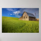 Old Barn in Field of Spring Wheat Poster