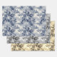 Old Castle Modern Blue Toile de Jouy Muster Geschenkpapier Set