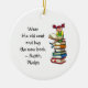 Weihnachtsschmuck mit einem Zitat von Austin Phelps: "Trage den alten Mantel und kaufe das neue Buch." Perfektes Geschenk für erwachsene Buchfreunde und Schulkinder, die einen Geschmack zum Lesen entwickelt haben. Mit einem niedlichen Bild eines Mädchens (mit einem großen Lächeln auf dem Gesicht) während sie auf einem großen Stapel Bücher sitzt. Sie können dieses Bild behalten oder einfach ein anderes hinzufügen, indem Sie auf Personalisieren klicken.