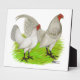Selbst blau ist eine weiche, zarte Farbe, die in vielen verschiedenen Hühnerarten zu finden ist, einschließlich dieses Old English Game Bantam Hahn und Henne.