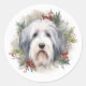 Old English Sheepdog Christmas Wreath Festivals Runder Aufkleber