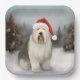Old English Sheepdog in Snow Christmas Pappteller