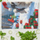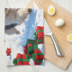 Old English Sheepdog läuft in Snow Weihnachtshut Geschirrtuch