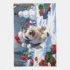Ein flauschiger Old English Sheepdog läuft glücklich durch den Schnee und trägt einen hellen roten Weihnachtshut. Die spielerische Winterszene zeigt den schattigen Mantel der Rasse, die sanfte Natur und den fröhlichen Geist, während sie den festlichen Zauber der Urlaubssaison einfängt. Ein charmantes Design voller Wärme und Fröhlichkeit.