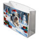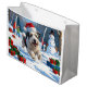 Old English Sheepdog läuft in Snow Weihnachtshut Große Geschenktüte