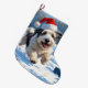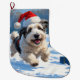 Old English Sheepdog läuft in Snow Weihnachtshut Großer Weihnachtsstrumpf