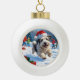 Old English Sheepdog läuft in Snow Weihnachtshut Keramik Kugel-Ornament