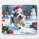 Old English Sheepdog läuft in Snow Weihnachtshut Mousepad