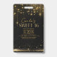 Feiern Sie mit diesem glamourösen 16-jährigen Abzeichen- im Stile des Sweet 16-Geburtstags, inspiriert durch den Glanz und den Glamour eines alten Hollywood-Events. Dieses elegante Design mit einer luxuriösen Farbpalette in Schwarz und Gold ist mit glitzernden Lichtern, einem strahlenden Kronleuchter und einem Glitzer-Akzent im Imitat für maximale Wirkung geschmückt. Ideal, um die Aufmerksamkeit auf Ihre Veranstaltung honoree, die das Rampenlicht Liebe, ist diese Vorlage vollständig mit Ihren Party-Details anpassbar und macht einen atemberaubenden ersten Eindruck für eine Nacht zu erinnern. Suchen Sie ID1108, um weitere koordinierende Produkte in diesem Design-Set zu sehen. HINWEIS: Design enthält einige generative Inhalte.