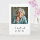 An elderly woman humorously gestures with a pointing finger for a birthday for getting older.