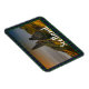 Scenic photograph of the Old Man of Storr rock formation on the Isle of Skye with large "Scotland" text overlay. Background is Highland's Clan Sutherland tartan pattern