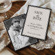 Start your wedding countdown with this "old money" style Save the Date card, featuring a classic cream front and a stunning full-bleed black-and-white photo on the back. The high-contrast design and sophisticated mix of serif and script fonts create a luxury, editorial feel that looks like it’s straight out of a high-society magazine. It’s the perfect way to give your guests a stylish first glimpse of your celebration while providing a beautiful, personalized keepsake they’ll love to display.