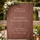 Featuring a rich mocha brown background with soft ivory typography, this fabric wedding sign creates an elevated first impression that feels classic, editorial, and effortlessly sophisticated. The balanced serif lettering paired with graceful script accents gives the design an heirloom quality — perfect for estate weddings, garden ceremonies, destination celebrations, vineyard venues, and formal ballroom receptions.