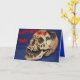 Ein alter Schädel mit einem blauen Hintergrund, der auf einer Geburtstagskarte steht.