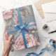 Erleben Sie die zeitlose Schönheit der Liebe mit unserem Vintagen romantischen Blumenpapier. Dieses elegante Design besticht durch ein zartes, blütenfarbenes Set vor einem sanften, gedämpften, blau-grauen Hintergrund und schafft einen eleganten und nostalgischen Look. Das aufwändige Blumenmuster strahlt ein romantisches Ambiente aus und macht es zu einem idealen Ort für Hochzeiten, Jubiläen oder besondere Anlass, in denen die Liebe in der Luft liegt. Die subtile Farbpalette und die detaillierten Blüten verleihen diesem Papier eine alte Eleganz, die Ihr Geschenk hervorhebt und es in das zarte Gefühl eines Verstorbenen einhüllt