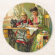 Old TIme Singer Nähmaschine Mutter und Tochter Runder Pappuntersetzer